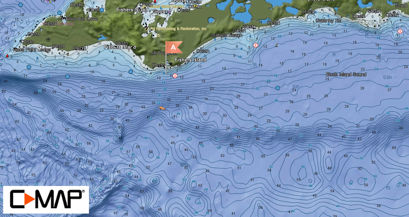 Click on map for hi-res vector map with satellite imagery provided by C-MAP