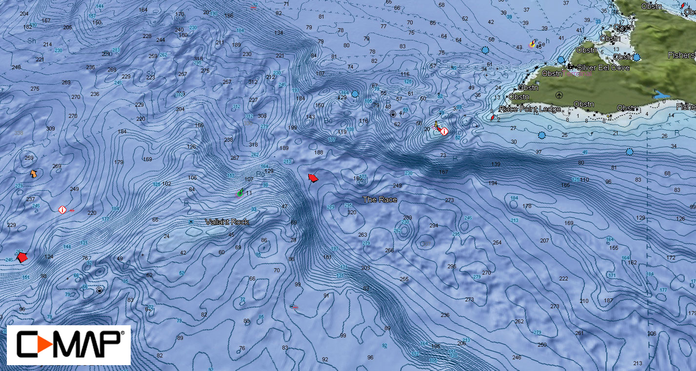 The Race is located between Fishers Island and Little Gull Island, is about 3.5 miles wide, and serves as the main entrance into Long Island Sound. Depths in the Race range from 250 to less than 50 feet, and these dramatic changes, coupled with the massive water exchange in and out of Long Island Sound, create a large rip line.