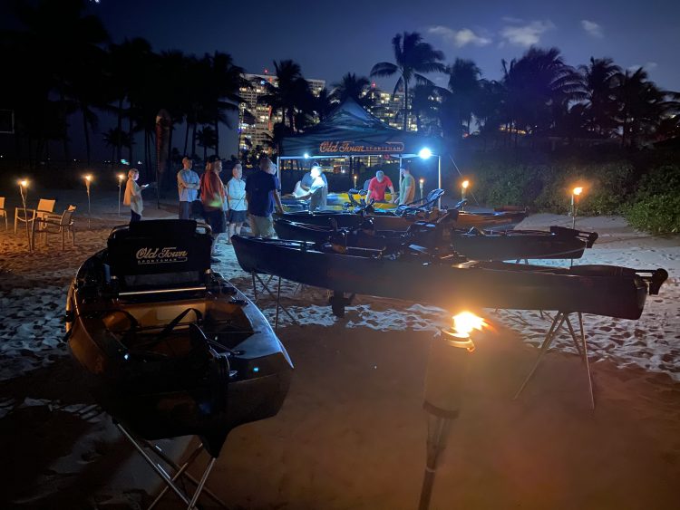 Word of the new line-up had been kept under tight wraps leading up to the early-morning digital drop. Back in February, I was invited by Old Town to Fort Lauderdale to preview and test-fish the new kayaks with a group of outdoor writers. The launch was so super-secret, we had to sign non-disclosure agreements and promise to keep all evidence of the event off social media. On the night before the in-water demos, we were introduced to the lineup by being walked out to a dark beach lit with tiki torches like a Survivor Tribal Council.