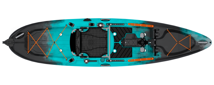 Another new model in the Sportsman line is the Salty PDL 120. It’s based on the Ocean Kayak Malibu Pedal hull, but it’s far more fishy, with rod holders, accessory tracks, a foam deck, and a large tankwell. It’s a great value for anyone looking to get into hands-free pedal fishing and the 12-foot lightweight hull will make for easy car-topping. BUT the hull is actually a really impressive performer. It’s great at handling waves, ideal for surf launches, and very nimble.