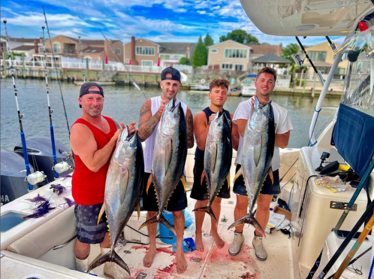 As the bass spread out along the South Shore of Long Island to feed on bunker (menhaden), Brandon livelines bunker, casts Joe Baggs soft-plastic baits, and jigs flutter spoons to catch bass to 50 inches. Then, when the bass move on and the bite shifts to tuna mid-summer, the climate control shifts to air conditioning.