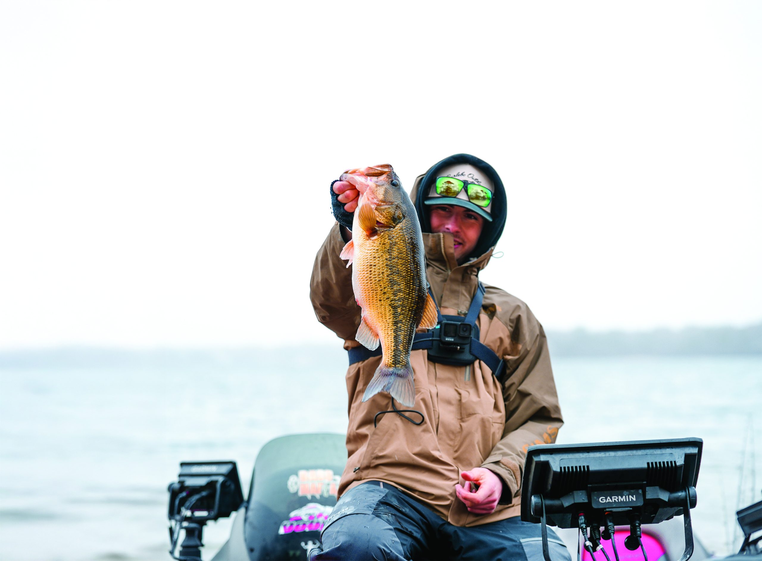 Pictured: Kurt Hoefig demonstrates that blade baits can draw reaction strikes from more than just big bass.