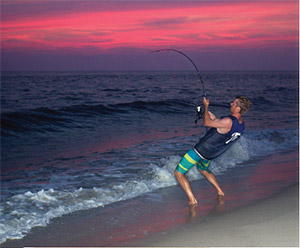 Leaving the rod in a sturdy, wellburied sand spike is an option, but only recommended with circle hooks. Set the drag as light as possible, essentially in freespool (or actually in freespool if you are using a bait-feeder or a conventional reel). On spinning reels, you will have to quickly open the bail, tighten the drag down, flip the bail back and set the hook in a matter of seconds, so be aware this can be a tricky maneuver to master.