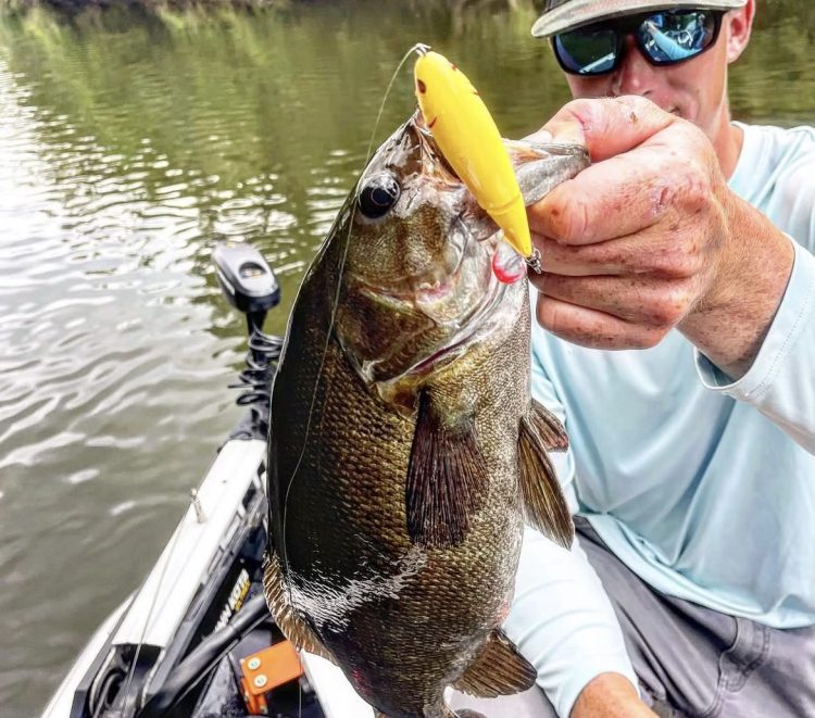“The western Massachusetts stretch of the Housatonic River is an incredible and underrated smallmouth bass fishery. I like to target them with topwater baits. I look for stretches of shallow rock flats located near and along drop-offs, which are perfect areas to cover water with the Whopper Plopper. You can get away with throwing the 70 size on a spinning setup, specifically in the 7-foot medium-action range. The Housatonic is an amazing place to explore; I offer jetboat trips to gain access to some of the unpressured sections of the river.”