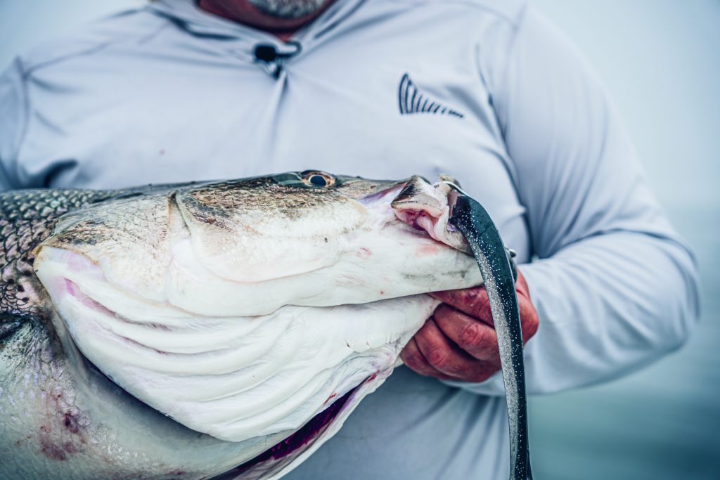 As with Brian in Boston Harbor, Joe leans on his electronics to find the fish, but that’s where the similarities end. While the Boston Harbor fish chased bunker through the middle of the water column, at Block Island, they were hugging the bottom. Rather than run and gun, Joe motored ahead of the bass and drifted down on them, using long casts to keep the lure in the strike zone longer.