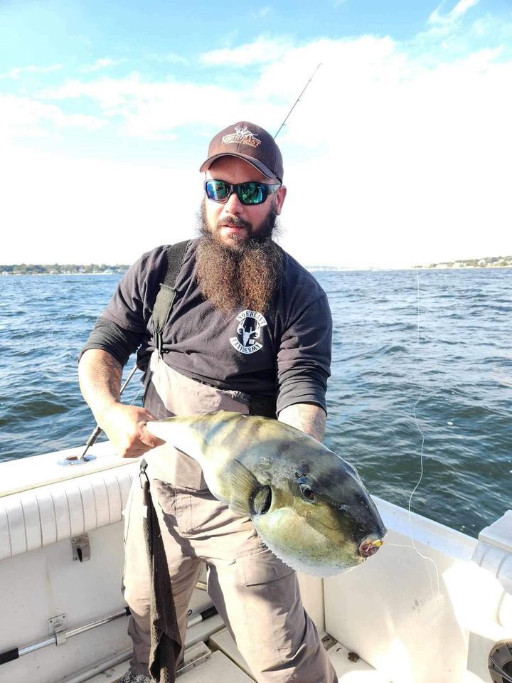 While tautog fishing in mid-October outside New London, Al Zuppe reeled in a 26.25-inch, 9.9-pound smooth pufferfish. Not to be confused with the smaller, edible northern pufferfish, these southern, late-summer visitors are highly toxic and need to be handled with care.