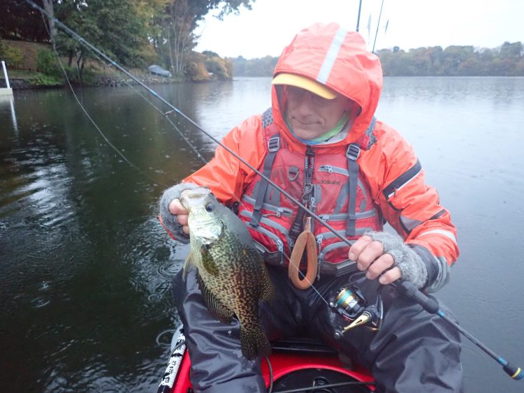 Of course, the wild card for this time of year is the hurricane season. Offshore hurricanes make our inshore waters more than a little bumpy and tropical storms can cost us fishing days. On days that are unfishable in the salt, consider giving your kayak a freshwater rinse. Lakes, rivers, and ponds are also going through the young-of-the-year frenzy as larger predators fatten up for winter. In many waters, weedbeds have died off as the water chills, so big plugs or stickbaits worked over the remaining weeds can be really effective for bass and pickerel. This is also my favorite time to target crappies. I fish small plastics and use tactics similar to striper fishing—it is really fun and a good way to keep your plastics game up.
