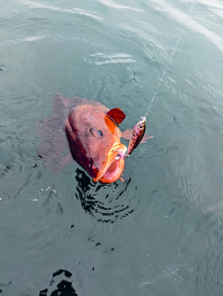 Metals jigged just off the bottom will target the cod chasing schools of baitfish. I often look for fish around large schools of tiny pollock. Even when I’m not marking cod on the fishfinder, I sometimes catch fish near the schools.