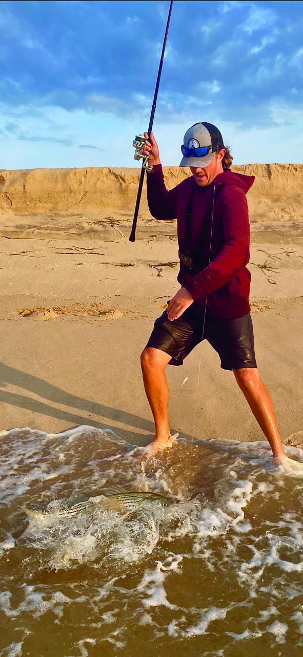 I fish this breaker zone exclusively but standing there during these conditions can be very dangerous. The backwash can suck you right into the suds, and the big waves may cause a concussion when they hammer you into the sand. First of all, never turn your back on the surf, especially during an east swell. It’s important to always be wary of these currents, solely for your safety. Always watch the ocean and you will come to know it intimately; with that increased safety will come prowess. You’ll recognize when big sets are coming, which happen to be the best feeding opportunities. You’ll notice ripples that don’t conform to the natural order, indicating the presence of fish.