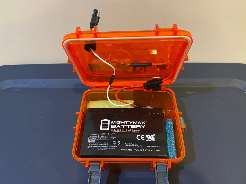 In addition, I cut a pool noodle in half along its cylindrical surface to create something resembling a speed bump. Inside the body of my kayak, accessible via its centrally located hatch, I adhered four pieces of the “speed bump” into a rectangular shape slightly smaller than the dimensions of the battery box. This makes a simple yet effective pressure-fitting mount for the watertight enclosure, keeping it from jostling inside the hull of the boat while I’m paddling, pedaling, exploring, and fishing.