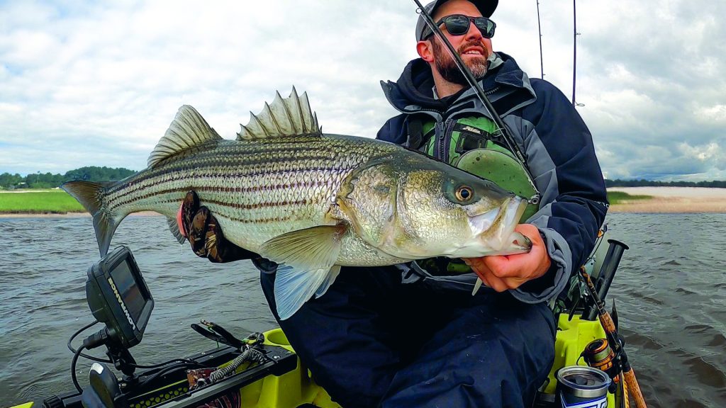 Although … sometimes it is a numbers game, specifically with smallmouth. A small variety of hair jigs and suspending jerkbaits are all you need for smallies on most days, and in some water bodies, 50-plus-fish days are possible. As difficult as I find it to stray from striper fishing in April, river smallies have just the right amount of allure to distract me into pursuing them, whether it’s alone or with clients on guided kayak trips.