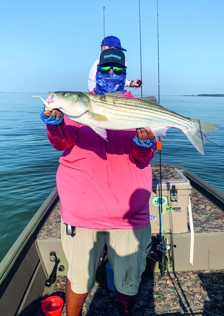 Topwater fishing in the shallows is what most locals in the upper and middle Bay prefer, but chasing birds over schools of baitfish is another way to find feeding stripers. Walk-the-dog-style topwater plugs and 5- to 6-inch soft-plastic paddletails on ½- to 3/4-ounce jigheads are the first lures anglers reach for when pursuing stripers this time of year.